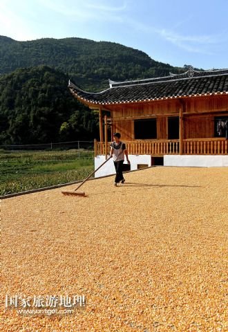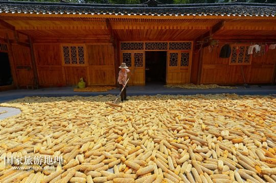 國家旅游地理 湖北恩施8月22日訊 8月22日,湖北省宣恩縣水田壩村二組農(nóng)民侯慶云在吊腳樓前晾曬玉米。初秋時(shí)節(jié),湖北省恩施土家族苗族自治州宣恩縣農(nóng)民搶抓時(shí)節(jié),對玉米等農(nóng)作物進(jìn)行收獲晾曬,山鄉(xiāng)家家戶戶忙“曬秋”,到處是一派豐收景象。 /新華社發(fā)(宋文 攝)