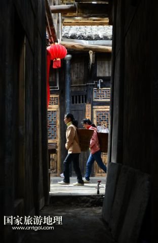 國家旅游地理 湖北恩施3月28日訊 3月27日,人們行走在慶陽古街上。喧囂的人群,吆喝的商販,肩挑背馱的漢子,行色匆匆的婦孺……位于湖北西部山區(qū)的恩施土家族苗族自治州宣恩縣椒園鎮(zhèn)慶陽古街,以其200余年久遠(yuǎn)悠長的歷史重復(fù)演繹著土家人的生活,展示著“土家商貿(mào)活化石”的獨(dú)特魅力。