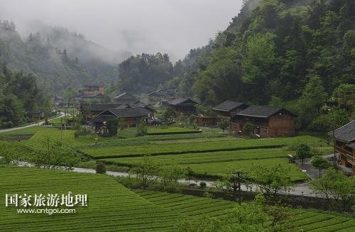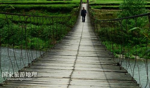 國家旅游地理 湖北恩施4月28日訊 4月27日,村民走在麻柳溪村的吊橋上。溪水潺潺,繁花匝地,翠林擁抱茶園,薄霧掩映木樓。悅耳的鳥鳴,裊裊的炊煙,讓人仿佛置身世外桃源……這就是湖北省恩施土家族苗族自治州咸豐縣黃金洞鄉(xiāng)麻柳溪村。