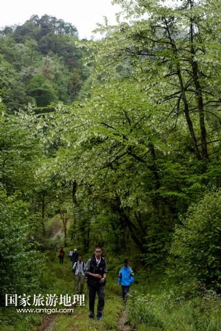 國家旅游地理 四川雅安5月4日訊 5月3日,游客從龍蒼溝國家森林公園珙桐林的鴿子花旁經過。目前,在位于四川省大相嶺山脈東麓北坡的龍蒼溝國家森林公園里,近8萬畝的鴿子花盛開。鴿子花是珙桐之花。珙桐是我國特有的珍稀植物,瀕臨滅絕,是國家一級保護植物,也是著名的觀賞植物。珙桐花朵盛開時猶如鴿群展翅欲飛,而被稱為鴿子花。 /新華社記者 江宏景 攝