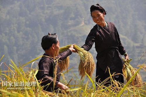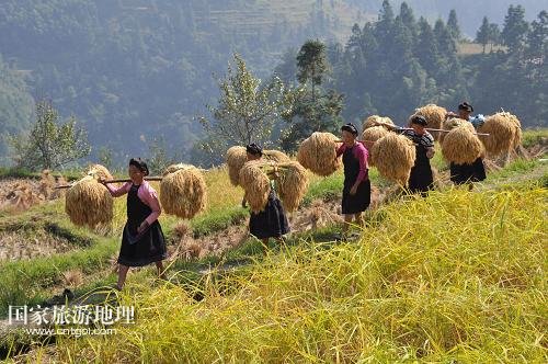 貴州省黔東南黎平瑤鄉(xiāng)糯谷秋收景(圖)