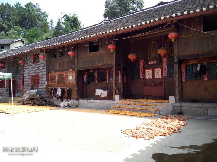 國家旅游地理  貴州黔南8月28日訊 (記者 萬棋民 攝影報(bào)道) 上圖是在黔南貴定縣的音寨,音寨是天下布依第一寨。音寨的民居依山而建,一層一層往山上延伸。從圖中可以看到,音寨民居一半是木制結(jié)構(gòu),另一半新建的則是磚石材質(zhì)。這種新與舊的連接是兩個(gè)時(shí)代的接軌,反映了改革開放前與改革開放后隨著經(jīng)濟(jì)的發(fā)展,少數(shù)民族居民的居住環(huán)境和生活水平得到了極大的提升。在圖片右邊的木制房子大門的正上方,刻著三塊密密麻麻的字,上面刻的是毛澤東語錄,而且不只這一家的木制房子上刻有毛澤主席語錄,可以看出當(dāng)?shù)鼐用駥?duì)毛主席的敬愛之情。