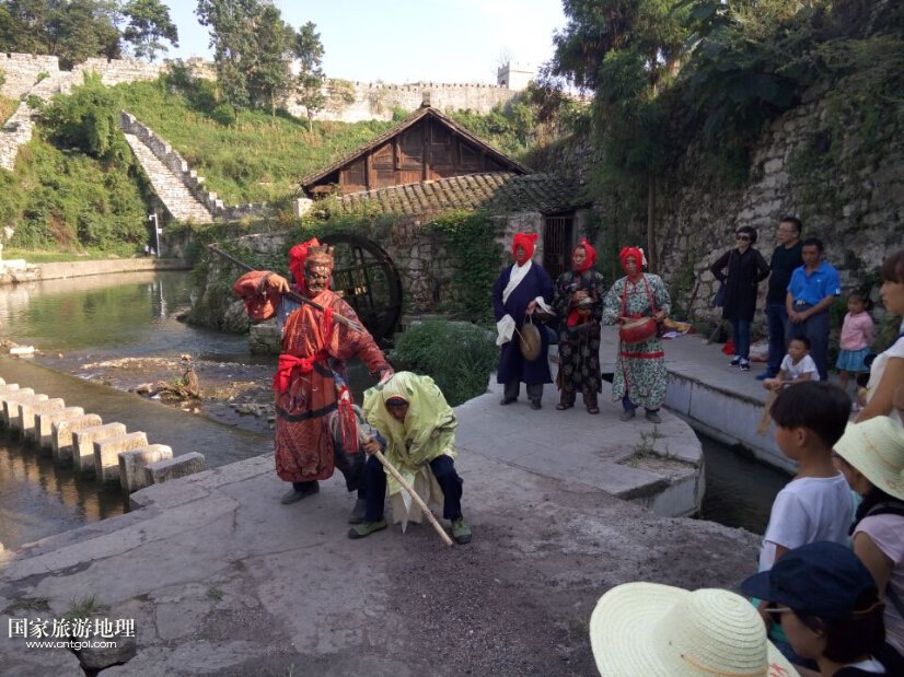 《二郎鎖孽龍》福泉陽戲,所謂陽戲是指唱給活著的人聽的;也有陰戲,便是唱給死去的人聽的。陽戲主要有兩種功能,一種是娛樂,另一種便是還愿納吉,意思是之前向天神祈求的事情實(shí)現(xiàn)了,于是便唱起陽戲向天神還愿,同時(shí)也向天神祈求吉祥。福泉老藝人在表演陽戲的時(shí)候,雖然言語不通,但依然可以感受到陽戲所具有的獨(dú)特魅力,以及陽戲中所蘊(yùn)含的民俗文化。