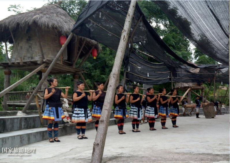 這是黔南荔波縣瑤寨姑娘在表演舞蹈。