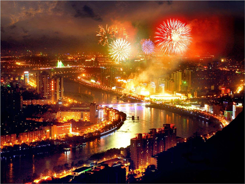 圖為 蘭州百里黃河風情線夜景